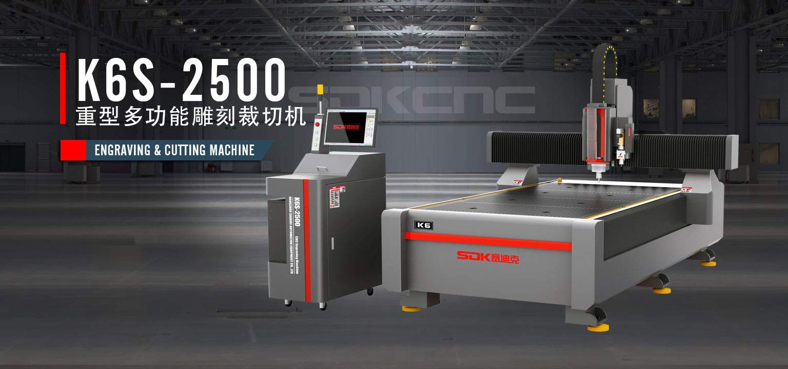 K6S-2500 is a multifunctional heavy-duty engraving and milling machine cutting machine independently developed and produced by SDKCNC, which can be used for high-speed engraving and milling and cutting of all kinds of soft metals and plates, and at the same time, it is equipped with electric vibration cutter as standard, and the generalized tool holder supports a wide range of knives to support cutting, half-cutting, punching, and indentation of flexible materials, which makes it a multi-purpose machine.